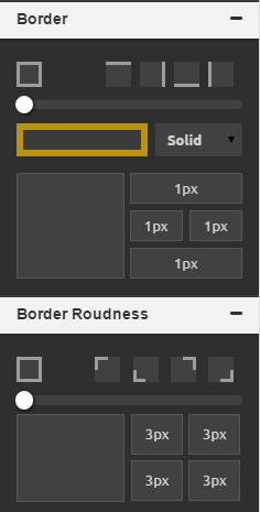 In the last two panels you can control the selected elements border appearence and it's corners roundness.